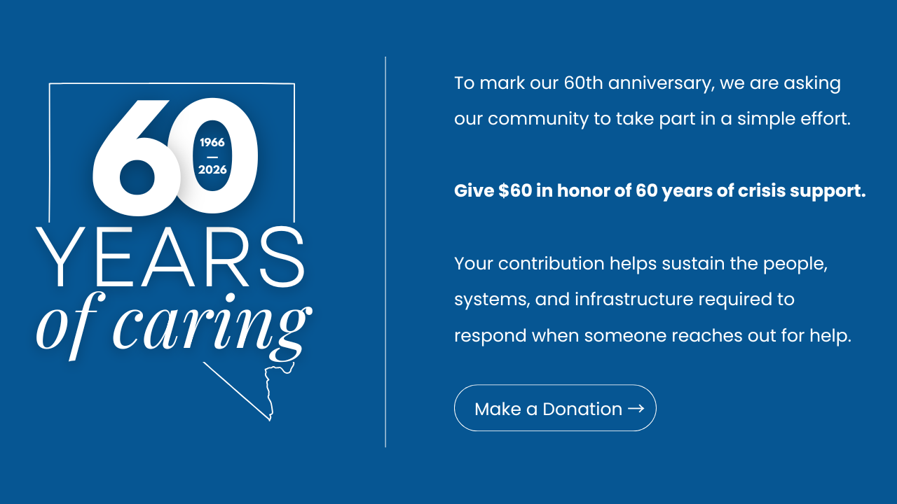 Crisis Support Services of Nevada is Northern Nevada’s 24/7 crisis contact center and the region’s 988 Suicide and Crisis Lifeline provider. We answer multiple specialized hotlines, connect individuals to care through our Care Coordination Unit, and provide in-person advocacy and support to survivors of sexual violence through our Victim Services Unit.